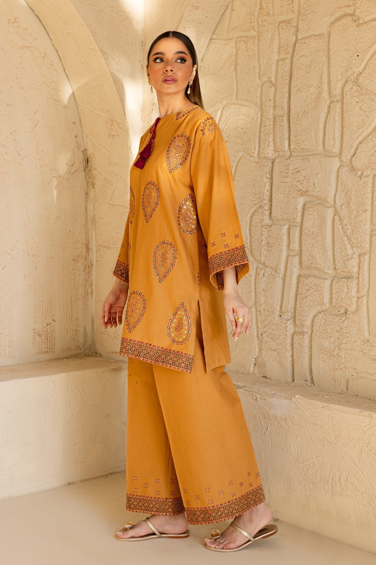 This exquisite Daily/Basic Wear Kurta Set is a must-have for your summer wardrobe. Crafted from airy Lawn fabrics in a vibrant Mustard hue, the Straight Cut Kurta features intricate Embroidered detailing. Paired with a matching Straight Trouser in the same fabric, this 2-piece set offers a stylish and comfortable ensemble. Elevate your everyday look with this Saifron creation.