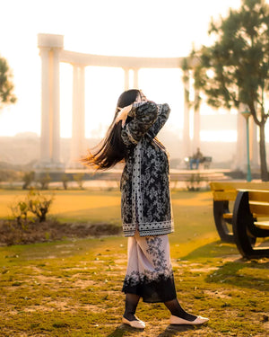 A stylish 2-Piece Co-Ord Set designed for effortless elegance and everyday comfort. Crafted from flowy crepe fabric, this ensemble features a loose-fit printed shirt paired with matching trousers, making it a perfect all-season wardrobe staple. The bold black base is enhanced with contemporary prints, making it both versatile and chic for daily wear.