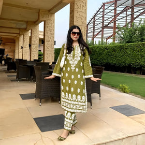 Elevate your summer style with Glamour Stylo’s Embossed 2-Piece Arabic Lawn Co-Ord Set – Indian Chicken Kari. Featuring delicate embossed detailing and a ready-to-wear fit, it's the perfect blend of elegance and comfort for casual, daily wear.