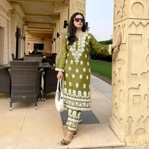 Glamour Stylo Embossed 2-Piece Arabic Lawn Co-Ord Set – Indian Chicken Kari