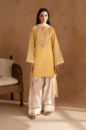 Additional Description: This exquisite Women's Daily/Basic Wear Kurta Set in Lemon is a must-have for your summer wardrobe. The Short Kurta boasts intricate embroidery, paired with a comfortable Cotton Straight Trouser. Complete with a chiffon Dupatta and lining attached, this 3-piece ensemble from Tawakal Closet is perfect for any occasion.