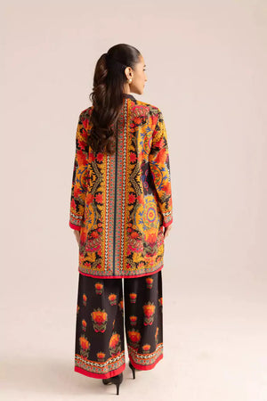 - 2-Piece Stitched suit in luxurious digital printed silk, featuring vibrant floral motifs.