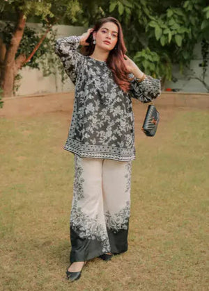 A stylish 2-Piece Co-Ord Set designed for effortless elegance and everyday comfort. Crafted from flowy crepe fabric, this ensemble features a loose-fit printed shirt paired with matching trousers, making it a perfect all-season wardrobe staple. The bold black base is enhanced with contemporary prints, making it both versatile and chic for daily wear.