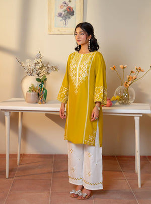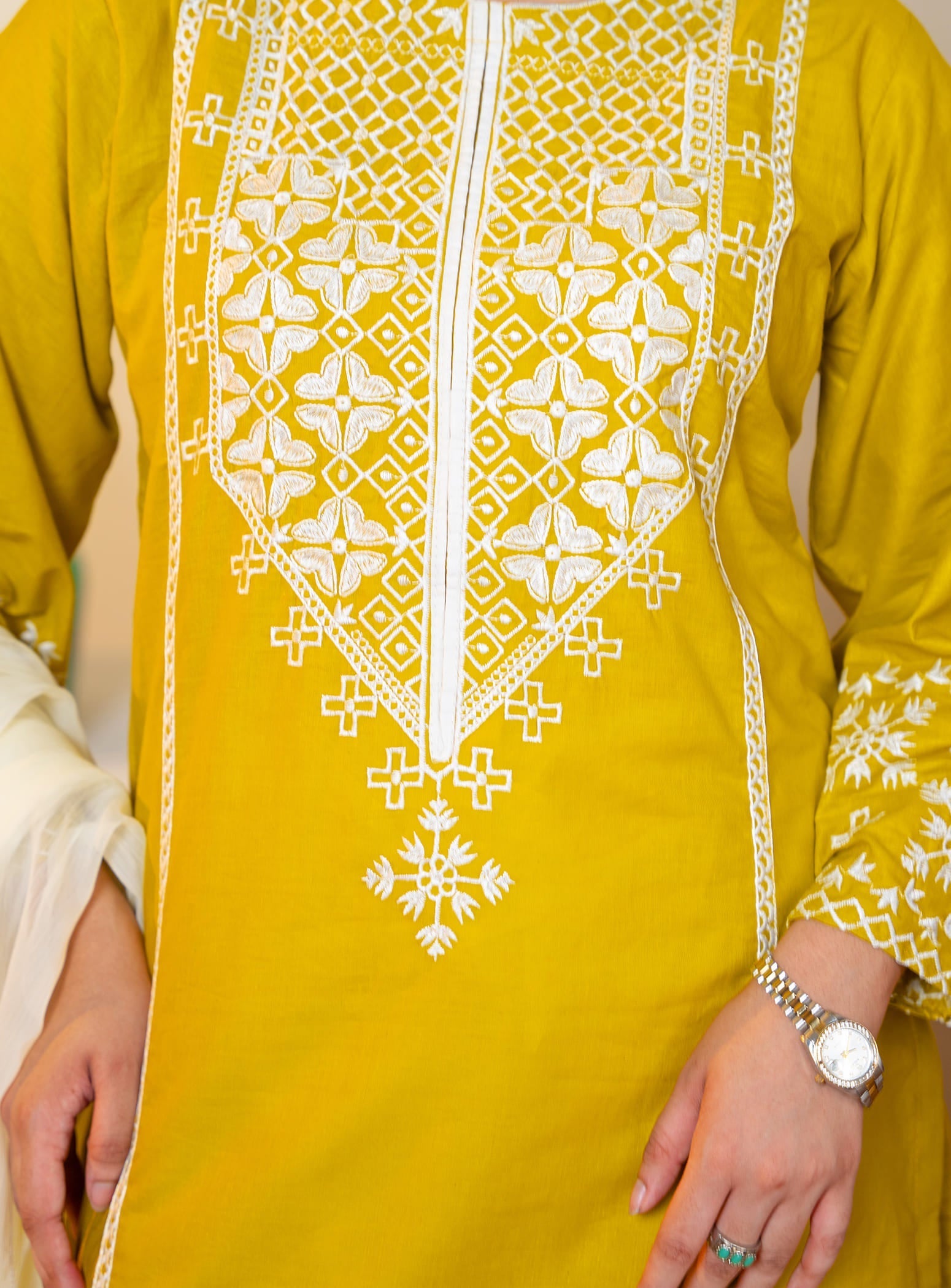 Bring sunshine to your wardrobe with the Yellow 3-Piece Cotton Kurta Set by Tawakal Closet. ☀️